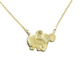 This 18 karat yellow gold elephant pendant set with 2 round diamond eyes which total 0.02 carats will have you feeling the sunshine of Africa! When you wear this golden elephant with its diamond eyes around your neck, you'll carry that feeling with you no matter where you go in the world!