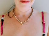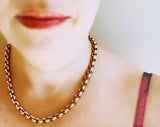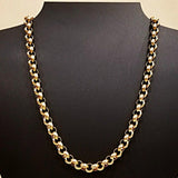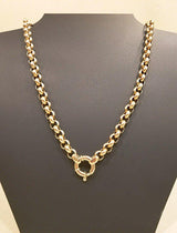 This belcher link chain in 9 karat yellow gold is definitely an any-season item and has a signoretti clasp. Sometimes you just feel like chains, positive chains. This fancy clasp allows one to wear the necklace backward and forwards for more diverse looks while keeping the same classic design.