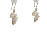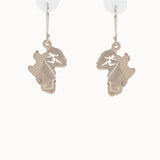 Silver Earrings featuring a map of Africa with an African hut standing out in relief.