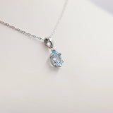 This pendant with an oval blue topaz stone weighing 1.57 carats and set in 9-karat white gold is just right for a really special lady. It has a four-claw setting to accentuate the design. Reach for the sky with the November birthstone and invoke the feeling of excited playfulness. This high-spirited pendant is eye-catching and graceful simultaneously.