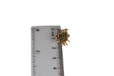 This crab brooch is made of 18 karat yellow gold with shining emeralds. It measures at 25 mm wide by 12 mm long or about 1 inch by 0.5 inches.
