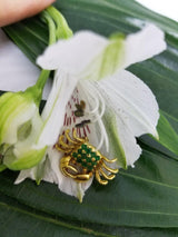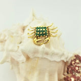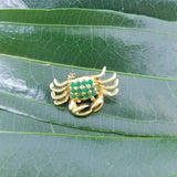 Add this utterly cute crab brooch to anything to feel just as cute or cuter! It'll remind you of the liberating call of summer with the yellow gold and green-glowing emeralds.