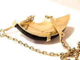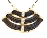This necklace is made with 14 karat yellow gold and elephant hair and is an elegant, edgy, bold and beautiful piece to suit any shade of skin!
