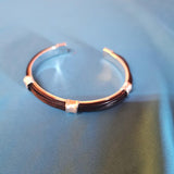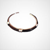 Elephant hair oval bangle has a heap of elephant hair on the metal bangle. Hair is in position by a few spacers. It is a casual but tasteful design where you get the full feeling of metal and Elephant hair.