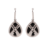 Pear Shape Earrings with Dancer, are two silver plates, securing the strands of elephant hair between them, exposing the elephant hair under the dancing woman design. The motif is uniquely African.