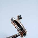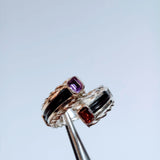 This expertly crafted silver bypass ring features two carefully selected gemstones, elegantly set to enhance their natural beauty. The bypass design offers a modern twist on classic elegance, providing a comfortable fit while showcasing the stones from multiple angles. Ideal for those who appreciate refined craftsmanship and distinctive style.