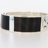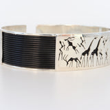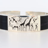 This exquisite silver piece features intricate elephant hair detailing, complemented by authentic rock-art depictions of giraffes and Bushmen. Crafted with precision, it celebrates traditional African artistry while offering a unique, culturally rich accessory. Ideal for collectors and connoisseurs seeking a blend of heritage and refined craftsmanship.