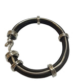 This expertly crafted silver bangle features a unique three-sided design intertwined with genuine elephant hair, blending traditional craftsmanship with contemporary elegance. Its distinctive texture and shape make it a striking accessory that complements both casual and formal attire, offering a subtle yet sophisticated statement piece for discerning collectors.