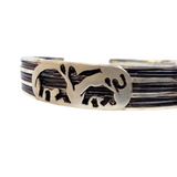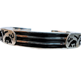 This silver bangle features an expertly crafted artwork of a mother elephant and her cub, symbolizing strength and nurturing bonds. The intricate design highlights fine details, making it a sophisticated accessory that celebrates wildlife and family connections. Perfect for those who appreciate meaningful, elegant jewelry with a touch of nature-inspired artistry.