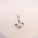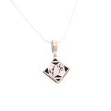 Silver Pendant with Bushman Hunter Design, is two silver plates, securing the strands of elephant hair between them, exposing the elephant hair under the bushman hunting design. The motif is uniquely African.