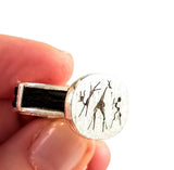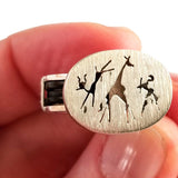 This is for you! This Silver Ring with Elephant Hair has an Oval top with cut-out Rock-Art emblems. The Silver top has a brushed finish.