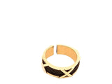 A 14 karat yellow gold ring with elephant hair and a big X that is the main feature of the ring to hold the structure in place, and adds a sophisticated detail. This is a kiss, blown from Africa! This fabulous unisex ring with a bold gold X.