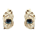 These 18 karat yellow gold half-hoop earrings are designed to make the lights catch those sapphires totaling 0.90 carats and all those diamonds totaling 0.12 carats. The graceful curves with the design of leaves on each side lending an antique air to your style will have you walking with your head held high!
