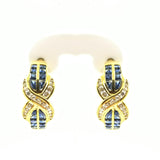 18 kt Yellow Gold Hoop Earrings with Sapphire and Diamonds
