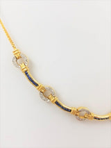 This 18 karat yellow gold necklace with 48 diamonds totaling 0.24 carats and 30 sapphires totaling 0.30 carats is pleasing on the eye and incredibly lovely. It is a versatile piece that will have you carrying beauty with you everywhere you go. Above all, you'll feel royal with this on.