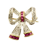 Wear this bow brooch to add that sweetness that you crave to your everyday life. The diamonds and rubies on this brooch are adorable and will make you look and feel the same. Additionally, you can add this to just about anything to give it an eye-catching gleam.
