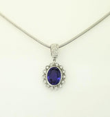 18kt White Gold Oval Tanzanite and Diamond Pendant