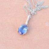 Double Four Claw Oval Tanzanite Pendant with a Diamonds Bail