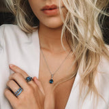 This 18 karat white gold pendant has double four claw oval tanzanite weighing 4.06 carats with a row of diamonds on the bail and one diamond in between the bail totaling 0.08 carats. This pendant is a date night must-have! If you want to feel and look your best then this is the perfect pendant for you!