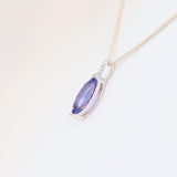 White Gold Marquise Tanzanite Pendant with a Diamond Swirl Bail