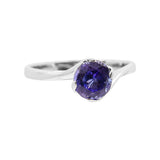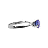 This design with its Blue Violet Tanzanite is elegant and sensual. Polished and refined in all aspects, this ring will make you feel sensual. The way the white gold elegantly wraps itself around this magnificent December birthstone makes this ring an acquired taste.