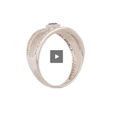This 18-karat White Gold matt ring showcase a round bezel-set 0.30-carat Tanzanite snugly secured in a tube. The design is practical, without breaking the bank, giving the illusion of two additional form-fitted diamond bands rounding off the look of this ring while the magnetism of the Tanzanite will leave you in awe. A must see! A must buy! Available in ring size M and is adjustable as needed.