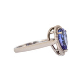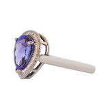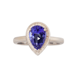White Gold Pear Shaped Tanzanite Grooves Ring