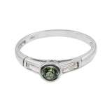 Weißgold-Röhrenring mit grünem Turmalin und Baguette-Diamanten