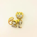 Diese Katzenbrosche besteht aus 18 Karat Gelbgold mit 0,12 Karat Diamanten und 2 süßen grünen Augen. Es misst 23 mm vom Schwanz bis zur Brust und 28 mm vom Kopf bis zu den Zehen, also 0,91 Zoll x 1,10 Zoll.