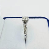 Handgefertigt aus 14 Karat Weißgold, besetzt mit runden Brillantdiamanten von insgesamt 0,28 Karat. Der Ring besteht aus vielen kleinen Diamanten, die den Eindruck eines großen Diamanten erwecken.