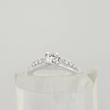 Verlobungsring aus Weißgold mit einem zentralen Diamanten von 0,24 Karat und 4 Diamanten auf jeder Seite von insgesamt 0,04 Karat.