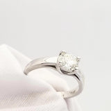 Ring aus 18 Karat Weißgold mit einem Diamanten von 0,90 Karat. Die glänzenden Krallen aus Weißgold halten den perfekten Diamanten fest und heben ihn hoch, um sein köstliches Funkeln zur Geltung zu bringen. Mit klassischem Design und purer Schlichtheit liegen Sie immer richtig.