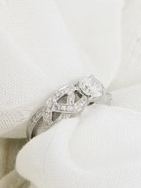 Ein umwerfender, ausgefallener Ring aus 18 Karat Weißgold mit einem zentralen Diamanten von 0,68 Karat und 48 Diamanten von insgesamt 0,18 ct.
