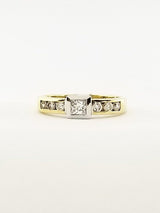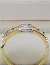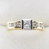 Ring aus 18-karätigem Weiß- und Gelbgold mit einem Diamanten im Prinzessschliff in der Mitte