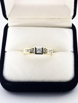 Diamant im Prinzessschliff in der Mitte von 0,19 ct mit 6 Diamanten an den Seiten von jeweils 0,01 ct, insgesamt 0,06 ct.