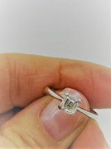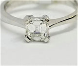 Verlobungsring aus 18 Karat Weißgold mit einem Diamanten im Asscher-Schliff in der Mitte von 0,45 Karat. Superschlau und genau richtig! Zeigen Sie, dass Sie es ernst meinen, mit diesem Weißgold-Diamantring im klassischen Design, der mit einem sehr seltenen Diamanten besetzt ist. warum selten? Denn Diamanten im Asscher-Schliff sind selten. Wussten Sie, dass nur 2 % aller Diamanten im Asscher-Schliff geschliffen sind? Ja, das ist also selten!!