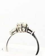 Weißgoldring mit einem zentralen Diamanten und Baguettes an der Seite