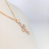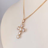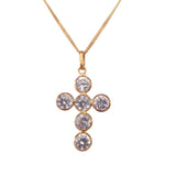 Eiskreuz-Anhänger aus 9-karätigem Gelbgold mit kubischen Zirkonia-Steinen. Jeder Stein hat einen dünnen Goldrahmen um den Gürtel herum. Diese Rahmen werden miteinander verbunden und ergeben eine Kreuzform. Die Größe des Anhängers beträgt ca. 3 cm.