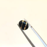 This 9x7mm oval intarsia onyx stone showcases a unique blend of deep black hues with contrasting patterns, making it a distinctive choice for sophisticated jewelry designs. Its precise cut and polished surface highlight the intricate natural banding, providing both elegance and durability for expert craftsmanship applications. Ideal for creating refined rings, pendants, or custom pieces that demand both visual interest and lasting quality.
