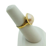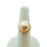 Eine rosafarbene Mabe-Perle, eingefasst in 9-karätiges Gelbgold.