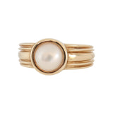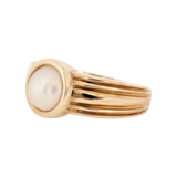 Runder Mabe-Perlenring aus Gelbgold mit Rillen