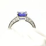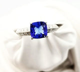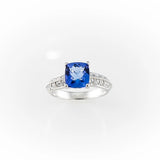 Ring aus 18-karätigem Weißgold mit Tansanit und Diamanten im Kissenschliff