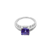 Filigraner Ring aus Weißgold mit Tansanit und Diamant im Kissenschliff
