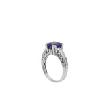 Das Design aus 18-karätigem Weißgold zeigt einen 2,68-karätigen Cushion-Tansanit mit achtzehn Diamanten im Rundschliff auf dem Ring. Der Filigran-Designring ist ein wahres Schmuckstück. Mit seinem aufwendigen Design und dem wunderschönen violettblauen Tansanit werden Sie sich wie eine Königin fühlen.
