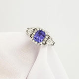 Weißgold-Diamant- und Kissen-Tansanit-Ring