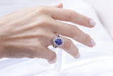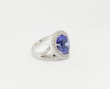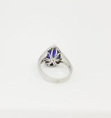 Birnenförmiger Halo-Ring aus Weißgold mit Tansanit und Diamanten