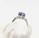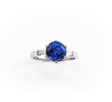 Ring aus 18-karätigem Weißgold mit einem atemberaubenden runden Tansanit-Stein von 2,57 Karat in der Mitte und auf beiden Seiten zwei feine Baguettes. Spüren Sie die strahlende Schönheit, während der Tansanit sein heilendes Licht um Sie hüllt, denn dieser wunderschön gefertigte Ring ist mehr als ein Schmuckstück, er ist auch ein Stein mit mystischen Eigenschaften! Manche Dinge im Leben sind mehr als schön!