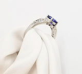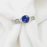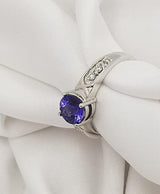 Ring aus 18 Karat Weißgold mit einem rund schimmernden Tansanitstein von 1,24 Karat, der von 4 Krappen in Position gehalten wird. Die Seiten sind mit 6 Diamanten von insgesamt 0,12 ct verziert. Dieser Ring aus Weißgold mit Tansanit und Diamant ist verführerisch detailliert und hat einen Hauch von Vintage-Diva. Die Details zwischen den Seiten des Steins und der Reihe der Diamanten verleihen seinem Aussehen zusätzliche Aufmerksamkeit und werden auf jeden Fall auch Ihr Aussehen interessanter machen!
