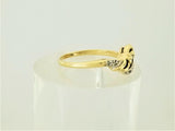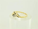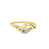 Ring aus Gelbgold mit einem Detail, das wie eine Schleife aussieht. Die Oberfläche ist mit zwei Diamanten verziert. Diamanten im Gesamtwert von 0,02 Karat.