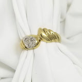 Ring aus 9-karätigem Gelbgold mit 3 Diamanten von insgesamt 0,03 Karat, eingefasst in einen Ring voller Rillen.